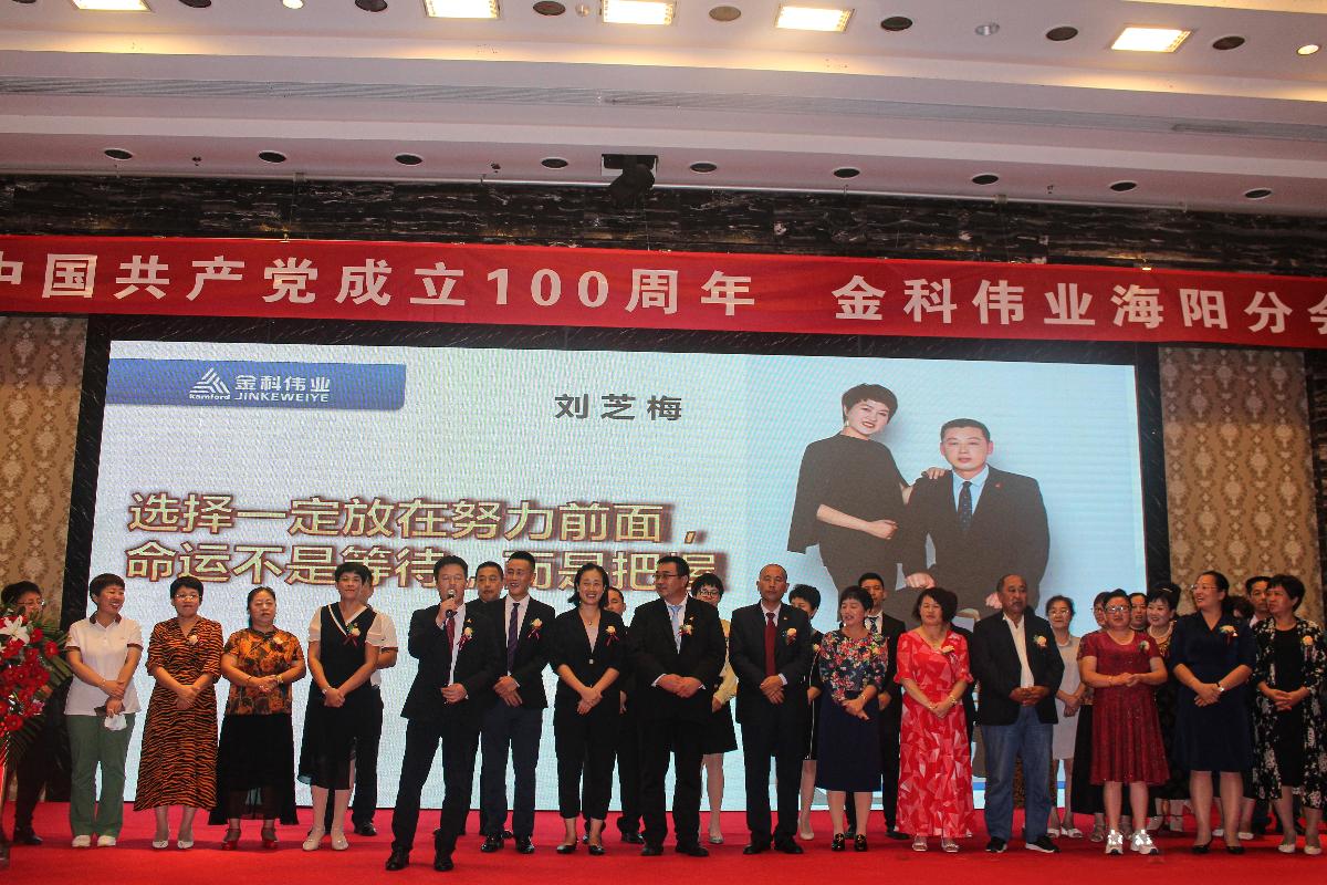 金秋九月,在中秋和国庆双节即将来临之际,2021年9月15日,金科伟业(中国)有限公司“庆祝中国共产党成立100周年盛典海阳分会”隆重召开。金科伟业(中国)有限公司董事长冯柏乔博士、金科伟业(中国)有限公司执行董事刘淑莲女士、金科伟业(中国)有限公司副总徐承明先生,贾秀琴女士,刘芝梅女士、王亮先生,于秋波女士及社会各界新老朋友们共同参加了本次会议。